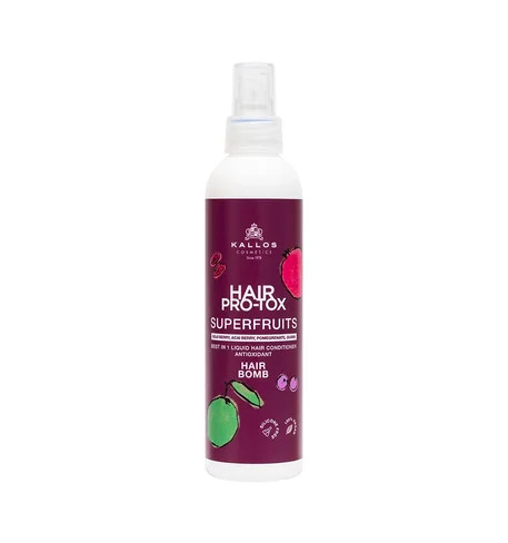 A Kallos Hair Pro-Tox Superfruits Hair Bomb egy regeneráló, öblítést nem igénylő kondicionáló spray,
